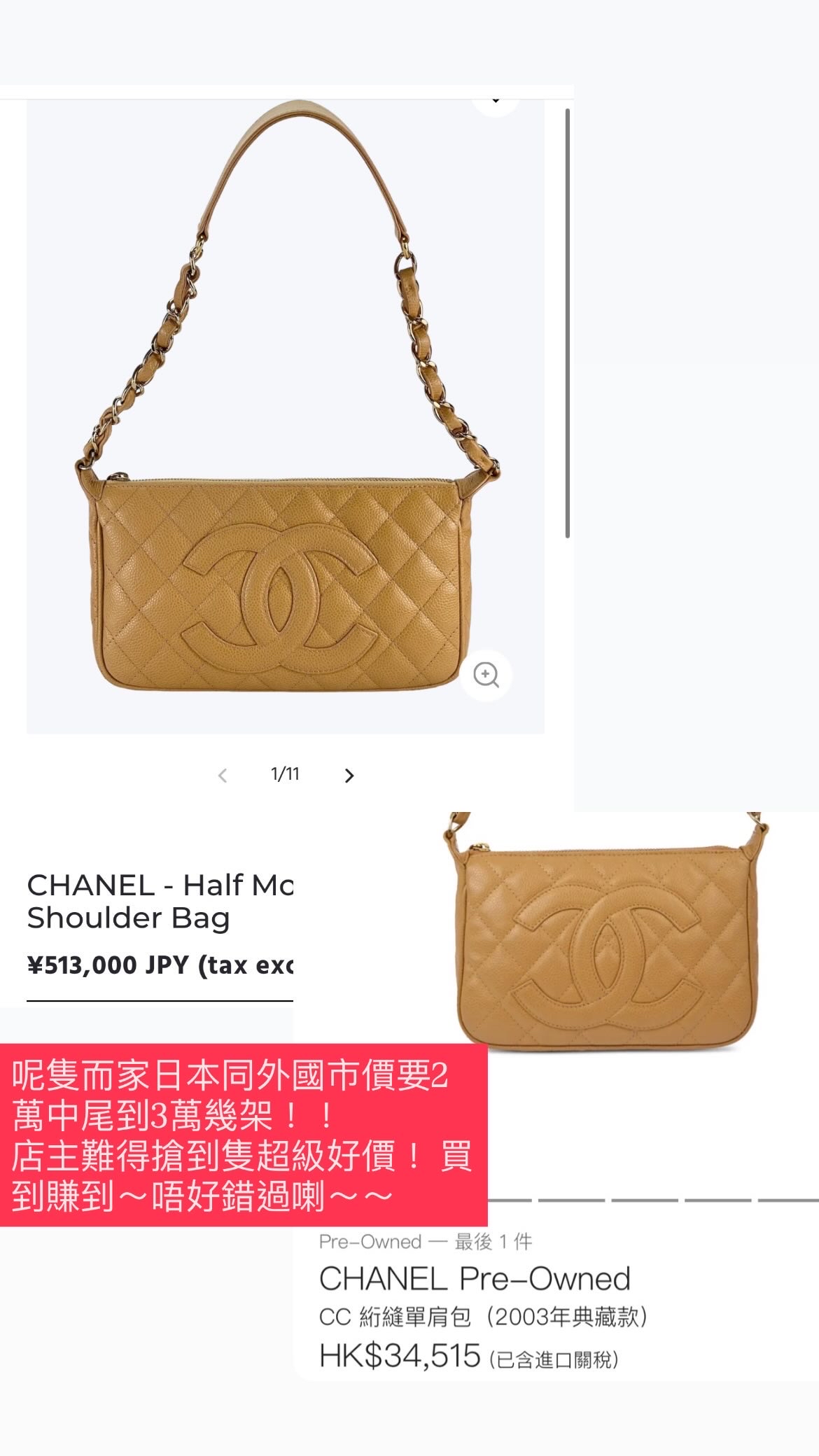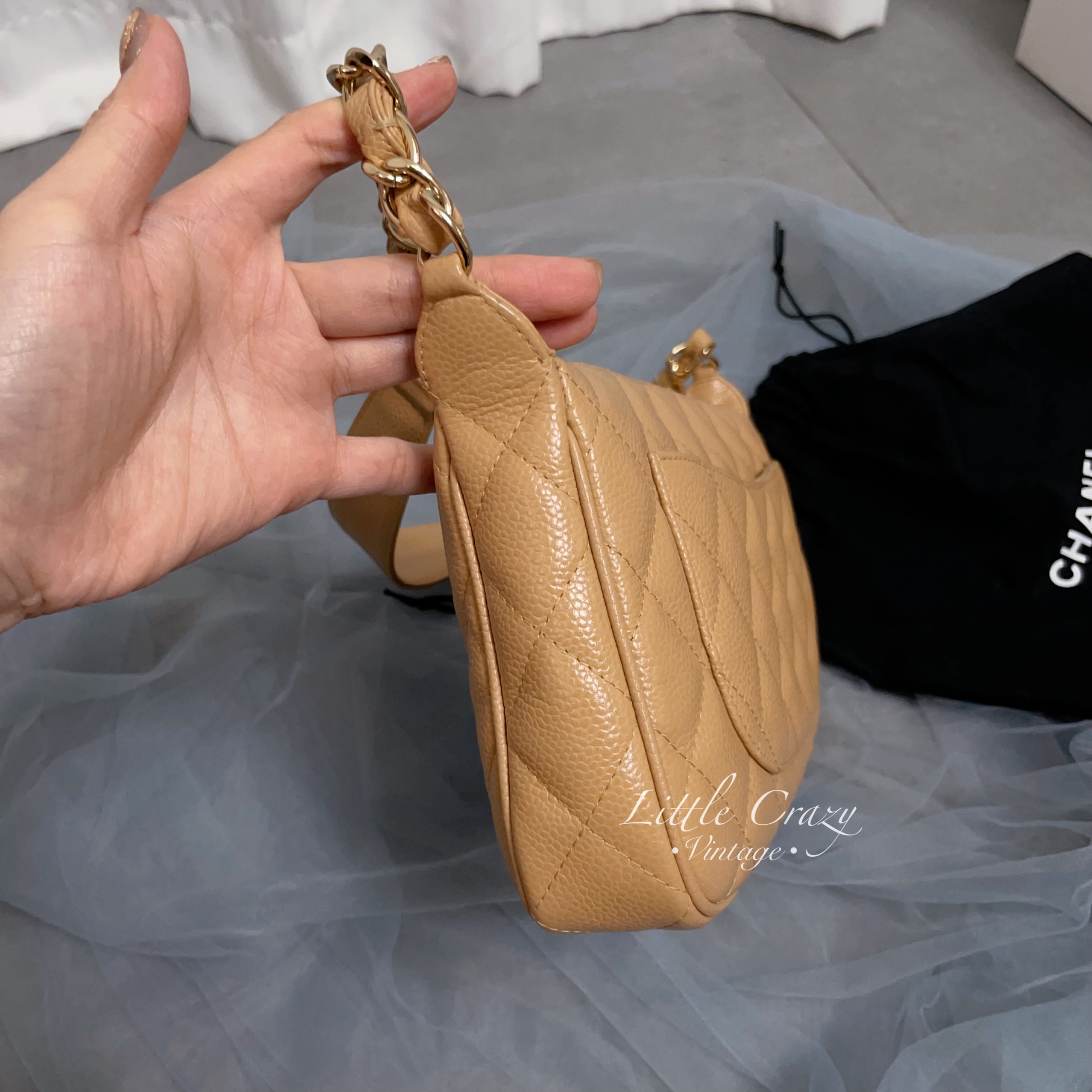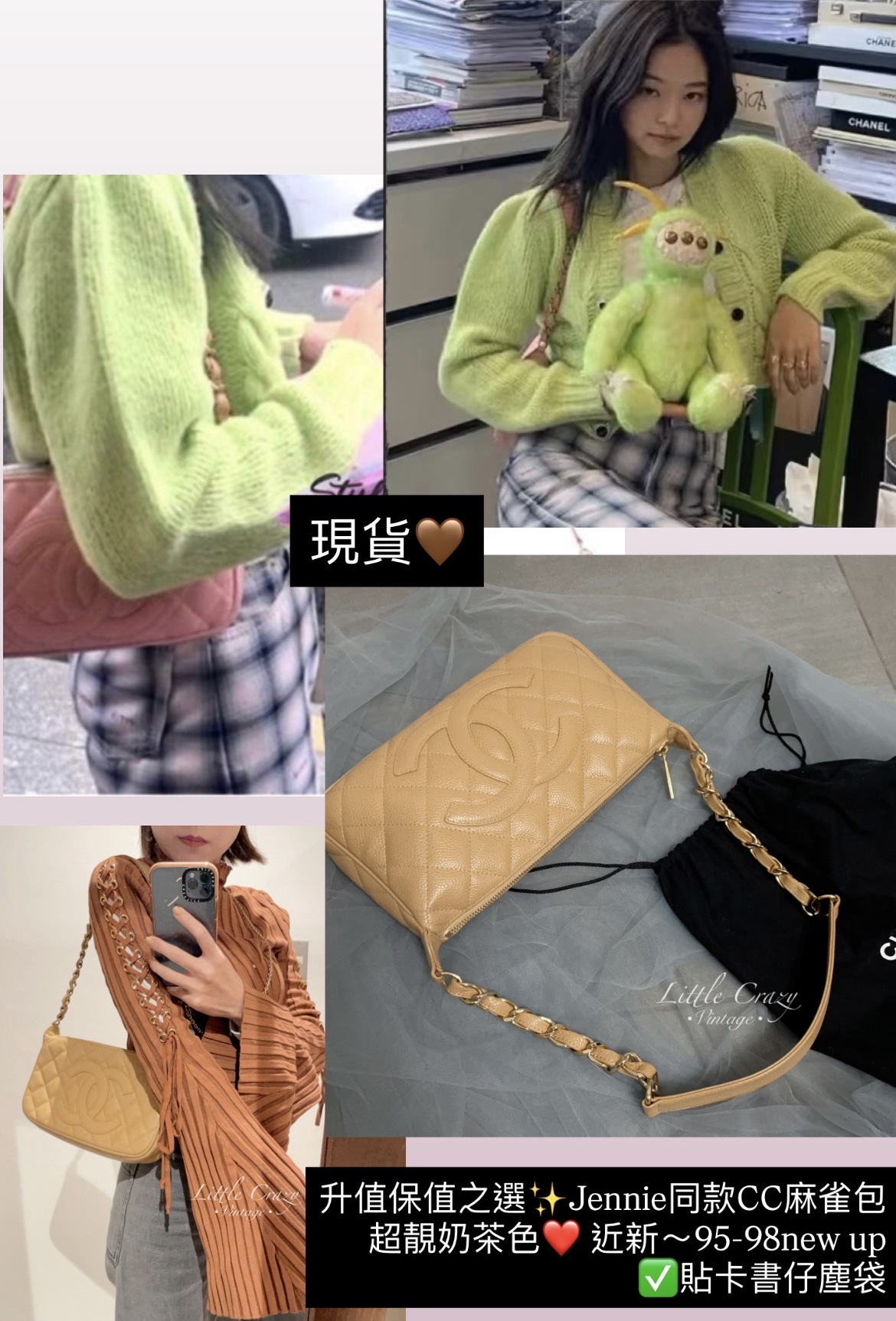 現貨必搶🤎 升值保值之選✨ Jennie同款CC麻雀包 超靚奶茶色魚子醬牛皮❤️ W25x14x4cm 無咩使用感,只是輕微歲月痕跡 近新美品✨ Full set ✅貼卡書仔塵袋 呢隻日本/外國網市價要2萬中尾到3萬幾! 難得店主搶到隻超靚價平出俾你地~ 去年店主賣左隻無咁新已經要18k了! 呢個狀態同超靚價不可錯過! 👩🏻🦰店主152cm93lb 🎀如送禮需禮品包裝+$12(請留言備註) 紙袋+絲帶+心意卡 - - 🌸如有配件會清楚註明,沒有提及即是沒有跟,會送普通塵袋保護 🌸下單前務必請先了解「關於我們」 🌸如沒有註明「預訂/售」即為現貨🇭🇰 🌸實際狀態請見相片,評級及說明乃個人觀感只供參考 🌸 請理解古董品年紀近二十至五十年左右不等 折舊率一定較高,無論多新,必有歲月痕跡/瑕疵,出現老化實屬正常;金屬物品(如各類飾品/手袋扣等等手袋扣等)無論幾新都有可能出現些使用痕跡或氧化情況,此為正常。就算未使用保存品,都有可能因為歲月或商品展示引起的輕微瑕疵。近年二手品有使用痕跡,也必是正常。相片所限可能未能完全展示狀態,如有疑問可先查詢清楚。介意及完美主義者均不建議購買本店,建議移玉步到專門店購買全新品,所有貨品售出恕不退換。下單即表示同意。 🌸 收款後恕不退款, 訂單一經確認不可更改; 貨品售出均不退換,敬請見諒。 🌸美美請小心愛護獨一無二的古董品🥰 🌸如手袋均不建議負重太大 🇯🇵所有美品均購自日本古物許可商 經日本專家認證,均為100%正貨🇯🇵 在不同光線下拍攝和顯示屏底下會有色差,以實物為準 人手量度大小可能略有偏差 ——————————————————