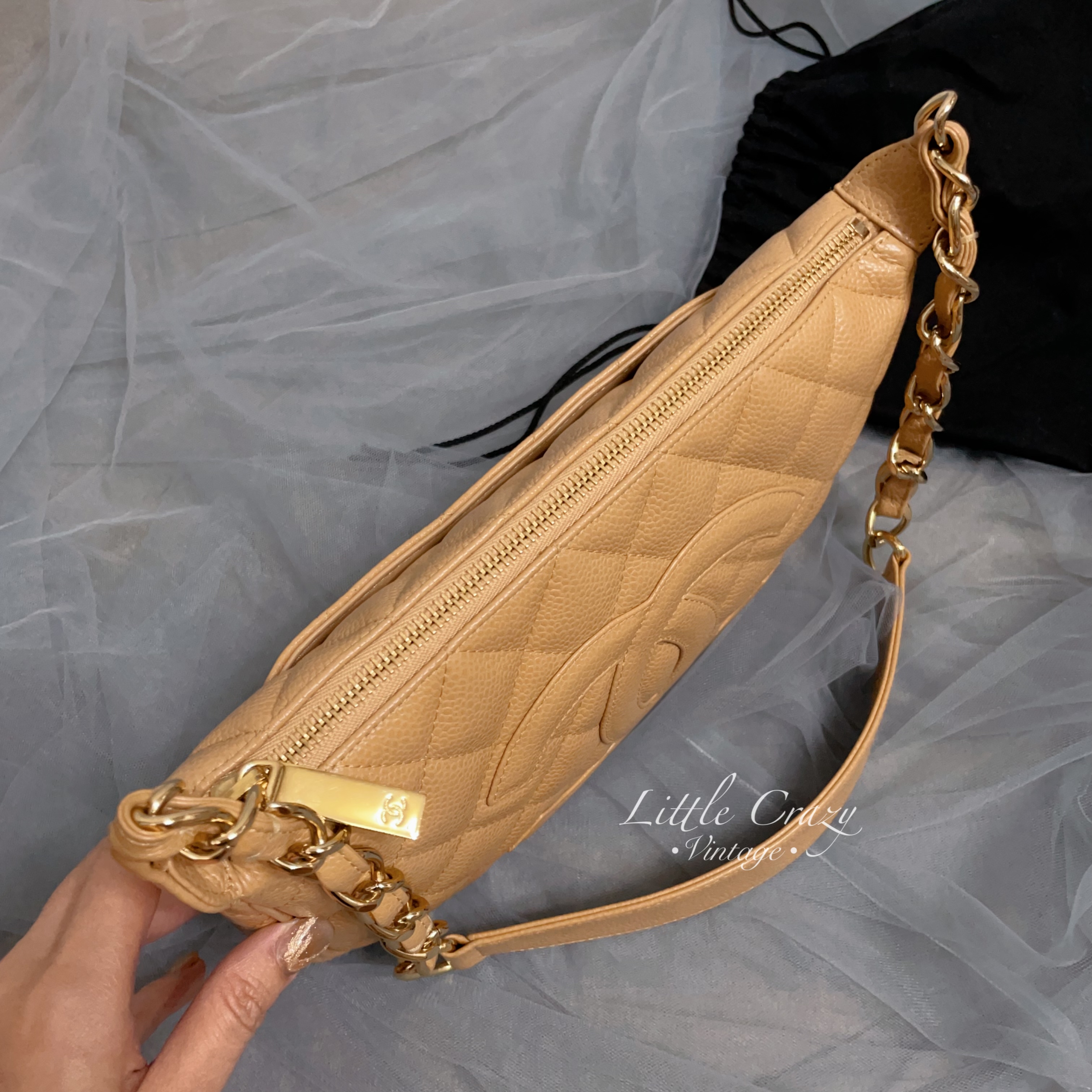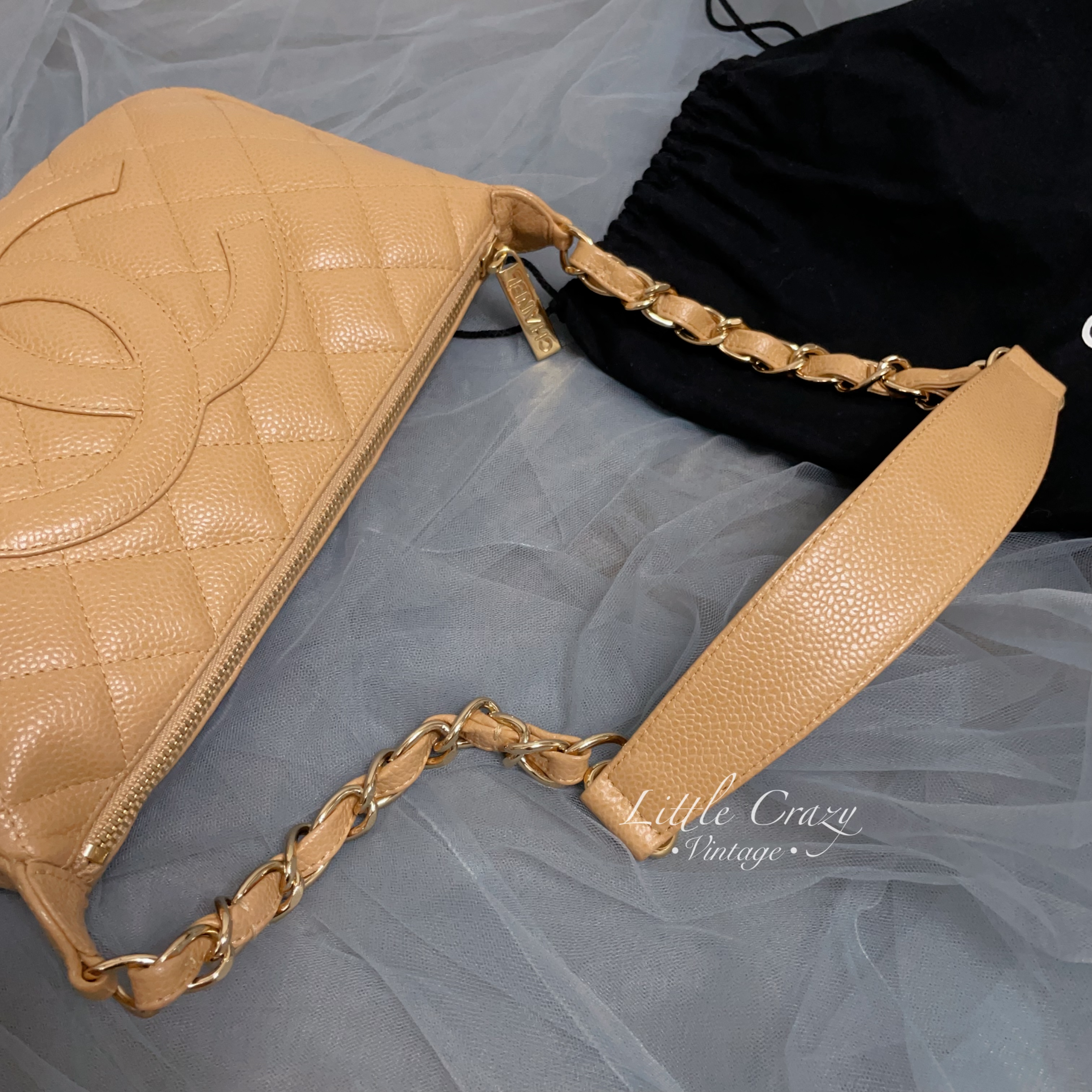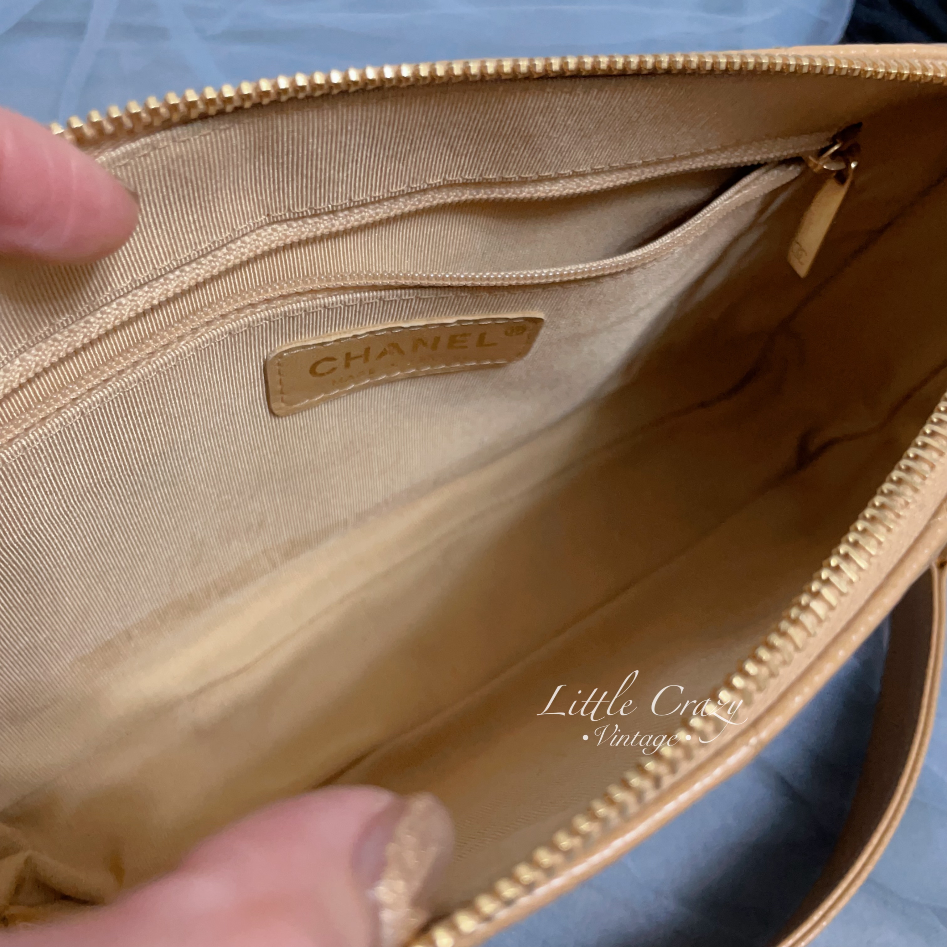Chanel vintage pochette beige caviar leather Jennie